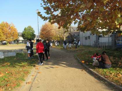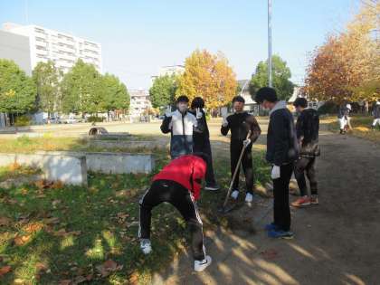 九条中学校では、部活動や希望者を募り、南区一斉清掃に参加しています。