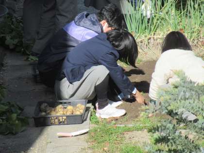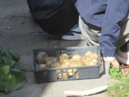 4・5組菜園では、ジャガイモの収穫が始まっています。それにしてもよく育ったねぇ。ゴロゴロ大きなジャガイモが土の中から飛び出してきます。見事な成果です。この後も、調理実習や八百屋さん実習につなげてくれるのかな...また報告してくださいね。