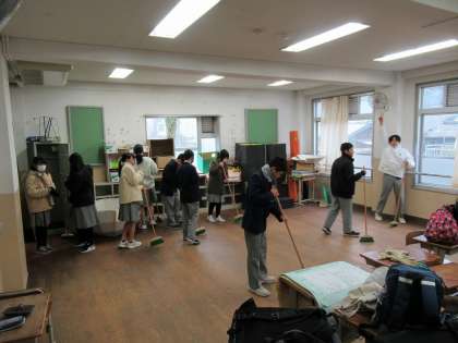 「Level up week」の一環として、今回初めて「たてわり一斉清掃」が実施されました。昨日までの「たてわりドッチボール大会」に続き、学年の垣根を越えた清掃活動です。