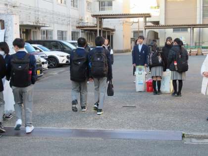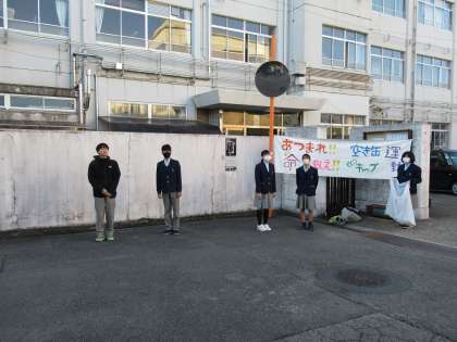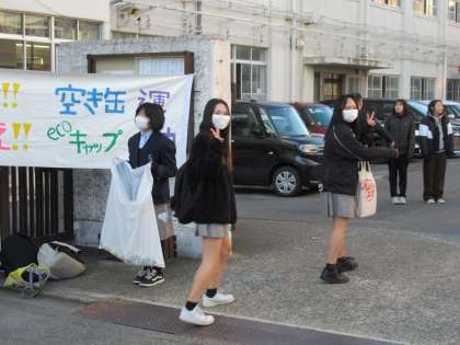 「エコキャップ、空き缶、使い捨てコンタクトレンズケースの回収にご協力願います!」今朝、校門では生徒会本部の皆さんの呼びかけの声が響いていました。