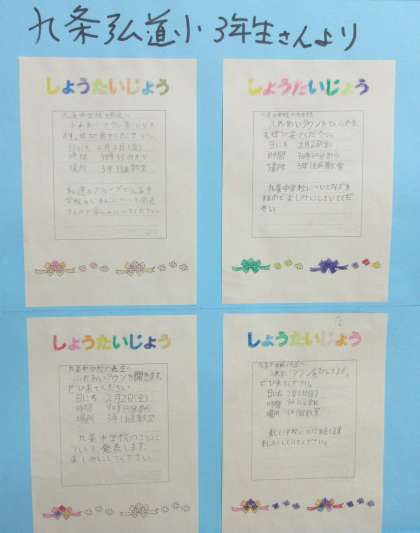 可愛い招待状 〜九条弘道小3年生さんより〜