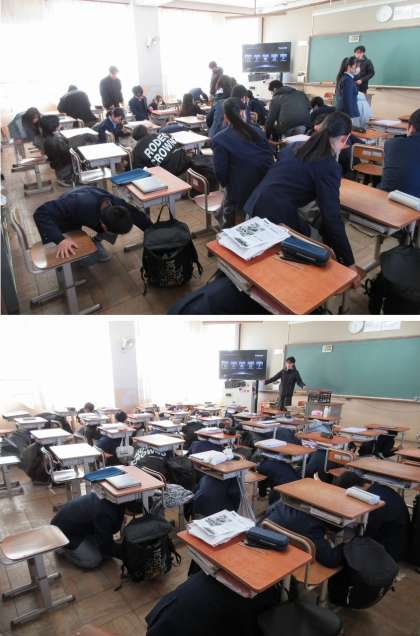 東日本大震災から13年となる本日、9:00に全校一斉にシェイクアウト訓練を実施いたしました。今年元旦の能登半島地震がまだ記憶に新しいい時期でもあり、生徒たちもとても緊張感に満ちていました。