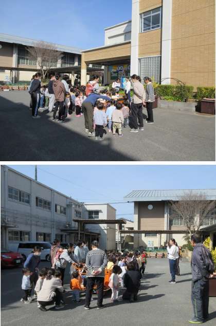 また、ご近所のひかり保育園の園児さんたちも、本校を避難場所とした訓練を行われていました。みなさん先生のお話をしっかり聞けていて、とても素晴らしかったです。