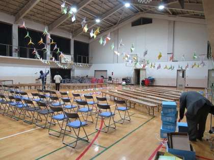 写真は、前日遅くまで会場の最終チェックをしてくださっている教職員の様子です。感謝です。