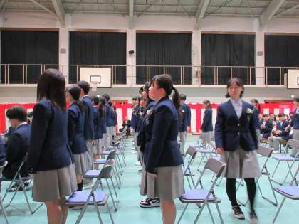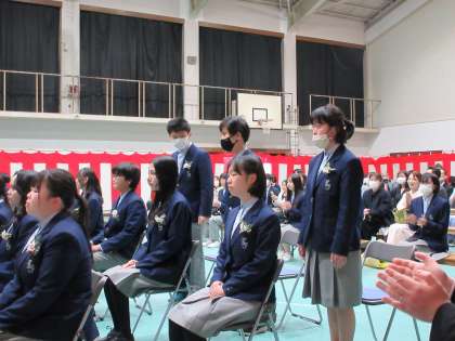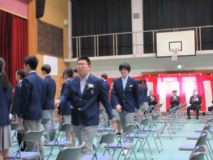 来賓祝辞の中で、PTA会長様もおっしゃっていただいた「京都一の卒業式!」の開式です。式場全体が拍手で迎える中、卒業生の皆さんの堂々たる入場です。