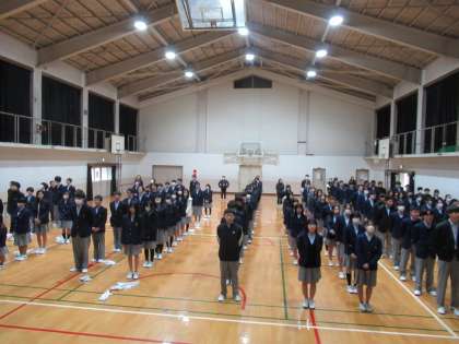 まずは「校歌斉唱」から、音楽科のH先生の伴奏にのり、ふたつの学年でも体育館に歌声を響かせてくれました。