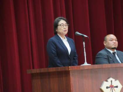 そして、本日お越しでない教職員の皆様からのメッセージも紹介されました。家庭科のH先生からの「支えられる側から支える側へ」の期待に背筋が伸びます。皆様、本当にありがとうございました。