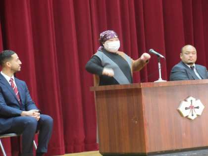 M先生は、久しぶりの「おはようございます!」を元気にかわされ、恒例の手話付きの歌を披露してくださいました。