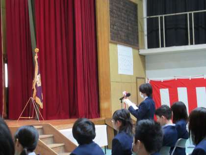 小学校の卒業から今日の日まで、少なからず不安な気持ちもあったのではないでしょうか?それでも今日という日を踏み出した新入生の皆さん、不安が期待に変わります。戸惑う気持ちよりもやる気がわいてきます。そんなみんなの思いを代表してKさんが誓いの言葉を述べてくれました。素晴らしかった!