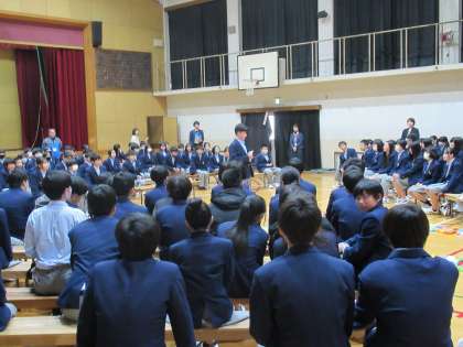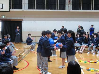 また、1年生の退場後には、「生徒会本部役員の皆さん、ご苦労様でした!」「吹奏楽部の皆さん、素敵な演奏をありがとうございました!」と拍手で労をねぎらいました。