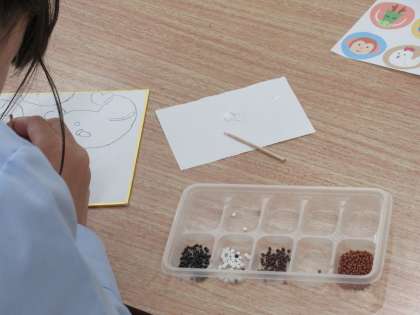 4・5組は、家庭科の授業で、ビーズを使った作品制作に励んでいました。すごい集中力で、黙々と取り組む姿に感心しました。完成が楽しみです。また見せてくださいね。