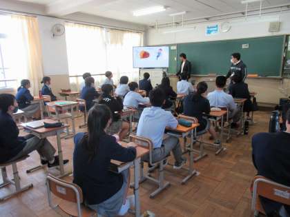 早速、各学年の英語の授業に入り、まずは自己紹介からお話しいただきました。