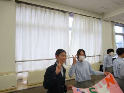 各クラスで、学級旗の制作も始まっています。今日は放課後に作業をしていた3年生にお邪魔をしました。
