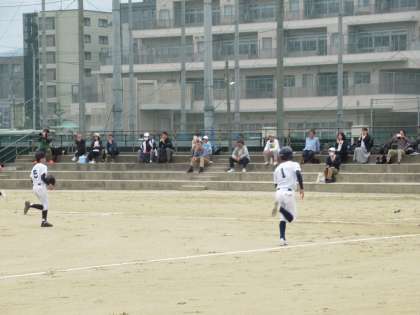 2回裏の攻撃、Kさんが内野ゴロエラーで出塁すると、次のバッターがセンター前ポテンヒットでランナーをためます。ここでスクイズを見事に決め1点追加、プレッシャーからか相手バッテリーにミスが出て更に1点、続く4番Sさんの強烈なヒット性のゴロの間に1点とたたみかけます。