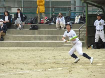 3回表の相手の攻撃では、先頭バッターの強烈なレフトへのヒットをYさんが前でさばき、すかさず送球し2塁でアウトとしました。サンキュー!ベンチや応援席からも大きな声援と拍手が起こります。