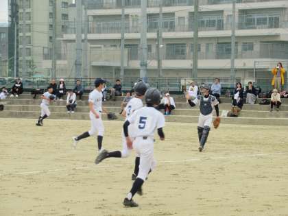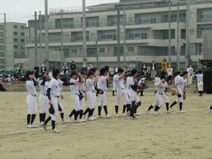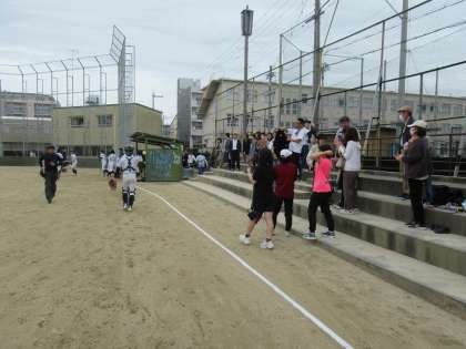 そして、リリーフのYさんが、最後のバッターを、見事、三振にとりゲームセット。九条中10−1相手校の5回コールドで、見事な勝利をあげてくれました。おめでとうございます!この調子で2回戦も頑張ってください。