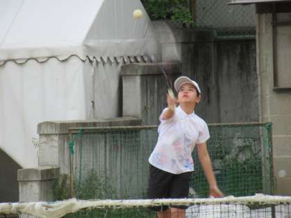 第1ゲームは先行されるも逆転し、デュースに持ち込む粘りを見せます。最後、押しきられ追いかけるスタートとなりましたが、第2ゲームにその積極性がつながります。いきなりOさんがサービスを決め先行します。ただ相手も真っ向から受けて立ち、点の取り合いとなります。最後は逆転され後がなくなります。