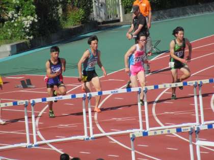 続いては、男子110mハードルにM・Yさんの登場です。予選2組のレースでは2位に入り、手ごたえを感じての決勝へ上々の展開です。