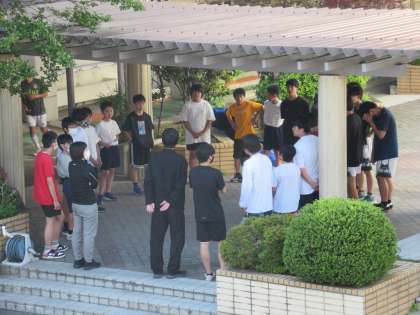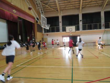 体育館種目の男子バスケットボール部、女子バスケットボール部、女子バレーボール部も、夏の大会に向かって活気ある練習を続けています。その要因の一つに、1年生部員の存在があると思います。まだまだプレイもサポートも覚えなければならないことはたくさんあると思いますが、同じ目標に向かって練習に取り組むことは間違いなくチームの力につながります。そしてポジション争いなど、よい競争は個人の力も高めてくれます。