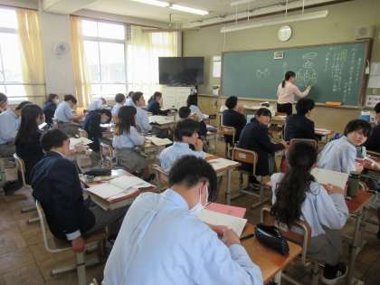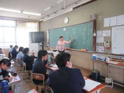 2年生の教室を覗くと、2組が国語の授業でした。「文章と図表の関係を理解することができる。」を学習の目標として、マッピングも活用して進めていましたね。
