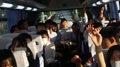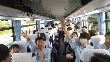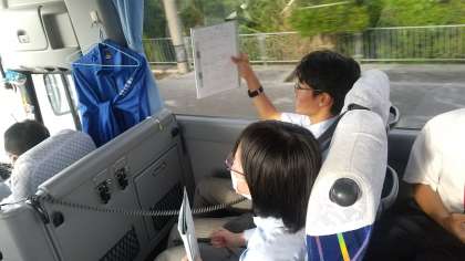 本日の活動を終え、ホテルへ向かう車中ではみんなでバスレクを楽しんでいるようです。