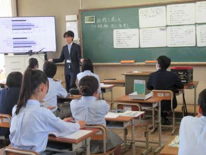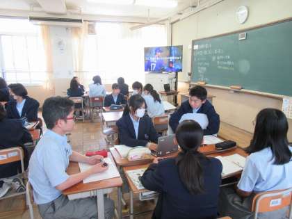 2年生では、「挑戦を楽しむ」ことについて、希望と勇気、克己と強い意志をテーマに、挑戦を楽しむための原動力などについて、グループで意見交流を進めました。