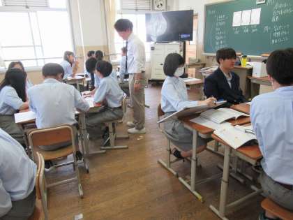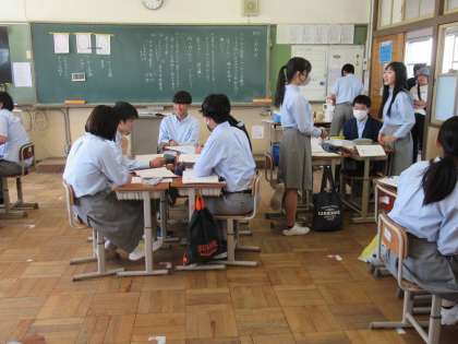 3年生では、教科書の教材「しあわせ」より、タマゴマン、アナゴマン、ダンゴマンの立場で考える道徳でした。