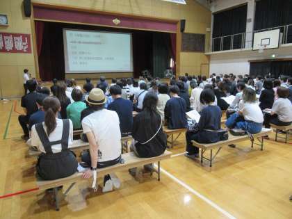 3時間目は、保護者の皆様には体育館で進路保護者説明会にご案内いたしました。全学年対象ということで、本当にたくさんの保護者の皆様、ご家族の皆様にご参加いただきました。進路指導主事のN先生の説明を熱心にお聞きいただきありがとうございました。学校とご家庭が手を携えて、子供たちの自立を支援していきたいと思います。