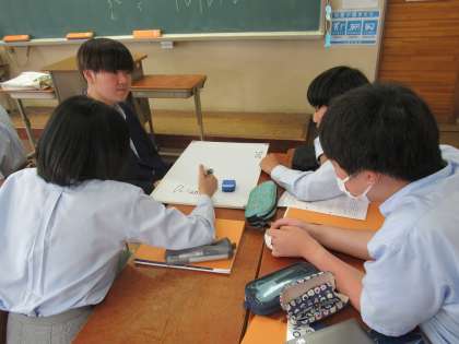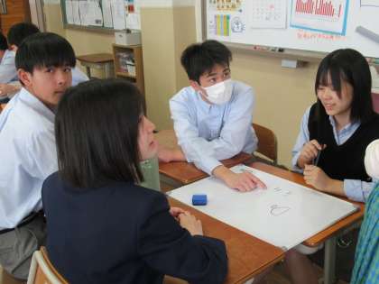 クイズは、「Sports」「English」「History」「Mr.Kuroki」のジャンルから出題されます。それをグループで、知識と英語を駆使して考えていきます。どのグループも積極的です。