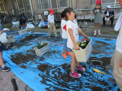九条塔南小学校の3年生、とっても積極的に作業してくれました。