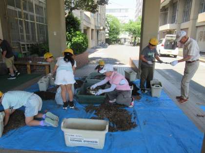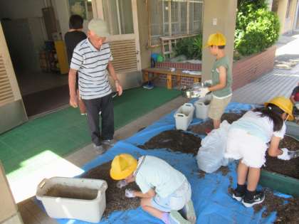 地域の方は、しっかり話を聞いて、元気に返事をしてくれる子供たちの様子に思わず笑みがこぼれます。とってもいい雰囲気で花植え作業は進んでいきました。いいね!