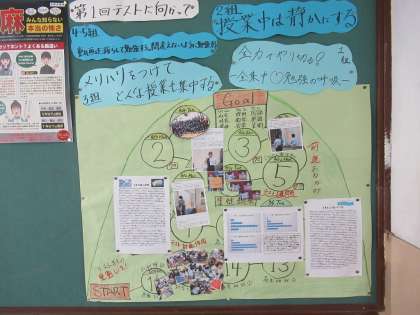 1年生は、初めての定期テストに向けて、決意や見通しをもって、これまで取り組んできました。その証が、1年フロアにあります。