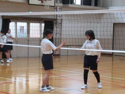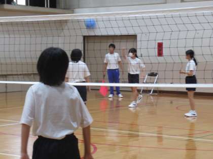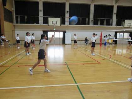 「バレーボールだけれど、ボールはソフトバレーボールを使ってやっています。」と、Nさんが教えてくれました。なるほど、これなら慣れるためにいいですね。