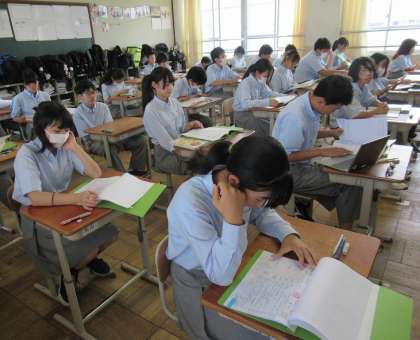 テスト開始前に2年生の教室を覗くと、最後の最後まで、教科書やノートに向かう姿が印象的でした。ねばってる!