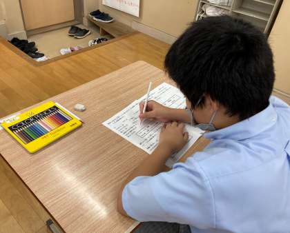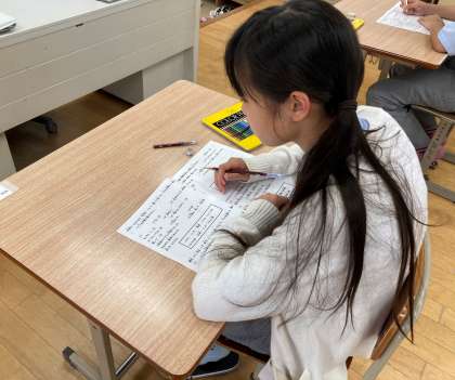 4・5組では、「し〜ん」と集中力を感じる雰囲気の中、それぞれが全力で取り組んでくれたようです。おっ、1年生も素晴らしい姿勢です。それぞれの力が発揮できるように、応援しています。