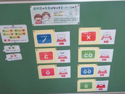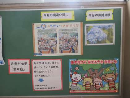 6月の保健目標は「歯と口の健康を考えよう。」です。先日、歯科検診もありましたが、生徒の皆さん、いかがでしたか? 現在、保健室前の掲示板には、歯についての情報が紹介されています。検診の時に、歯医者さんかおっしゃっていた謎の言葉「C」「CO」「G」「マル」などの意味も紹介していただいています。取材班は、思わず小学校時代「C」を連発されていたことを思い出しました。う〜ん、歯磨き!歯磨き!