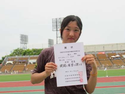 うれしい知らせです。陸上競技に取り組む3年Fさんが、本日行われた夏季大会で、見事2位入賞を果たしてくれました。おめでとうございます!