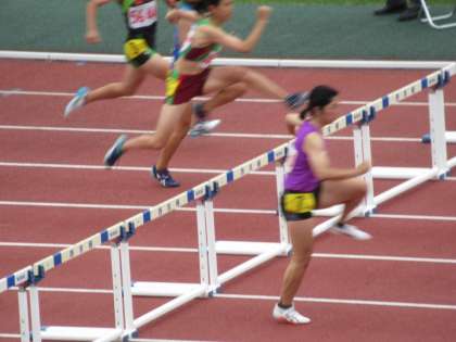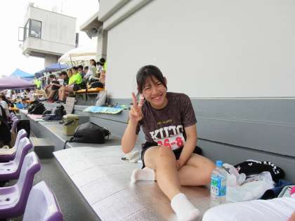 2年Aさんは、この種目に取り組み1年となります。今大会も自己ベストをねらい攻めのハードリングを心がけて臨みました。結果の方は、自己ベスト更新とはなりませんでしたが、持ち前の明るさで、次へつながるよい経験と捉えてくれたようです。応援しているよ。