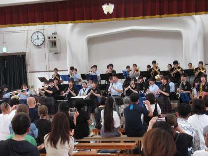 1曲目の「高嶺の花子さん」は九条中学校吹奏楽部でも人気のナンバーですが、今回はさらに迫力がすごい。一気に会場が一つになって盛り上がります。