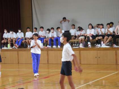 スタートから好プレー連発で、応援にも力が入ります。また体育委員さんがマイクパフォーマンスで盛り上げてくれます。いいね!