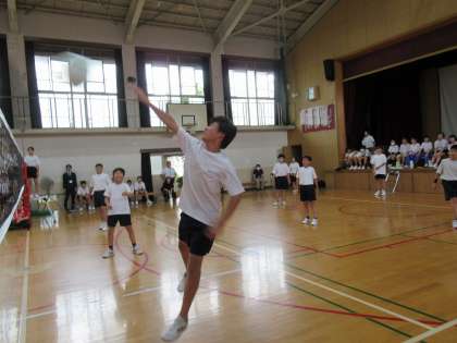 ソフトバレーボールは素材が柔らかい分、意外にボールの芯をとらえるのが難しく、変なところに飛んで行っちゃうこともありますよね。それを見事にとらえて、しっかりヒットしています。カッコよかった!