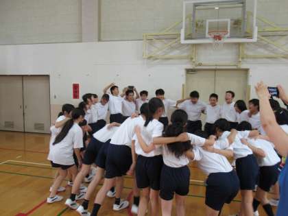 出ました「円陣」です! 各クラス、心を一つにして試合に臨んでいきます。いよいよスタートです!