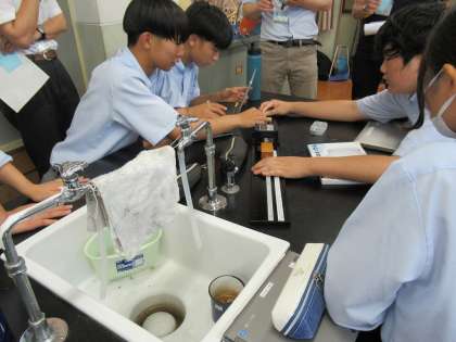 何と、実験に使用する器具は、N先生のお手製です。素晴らしい! おかげで生徒の皆さんも興味津々に実験を進めてくれました。頑張っている!