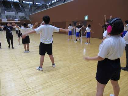 本日、育成合同球技大会が、京都市北区の「島津アリーナ京都」で行われました。九条中4・5組の皆さんも、そろって参加してくれました。