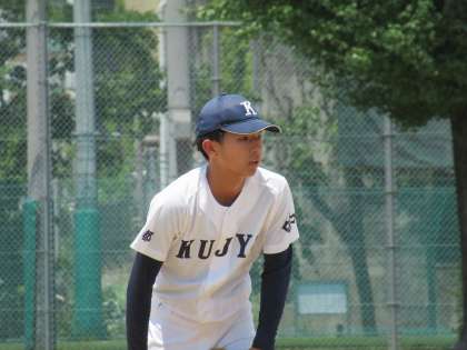1回表の九条中の守り、先発ピッチャーはSさんです。先頭バッターがフォアボールを選び、その後、相手の4番バッターに左中間を抜く2塁打を放たれ、1点を先取されます。それでも、この回、三者三振に抑える気迫を見せます。