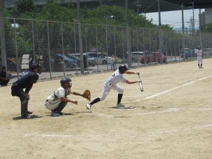 さらに攻撃を緩めない九条中は、2塁、3塁とし、Kさんがセンター前にヒットを放ち2点追加、なんとこの回5点を追加するビッグイニングとしました。すごい!