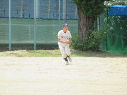 4回表、この回から九条中はピッチャーYさんに継投です。その代わりっぱなを攻められ、ワンアウトから続くバッターに右中間への2塁打を放たれます。その後、1塁、3塁とされ、セカンドごろからのゲッツーをねらいますが惜しくも1塁セーフ。1点を返されます。さすが野球伝統校T中学校だけに、簡単にはいきません。