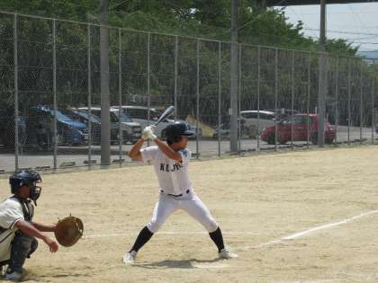 この回先頭のSさんが、右方向への流し打ちで右中間を破る3塁打で出塁します。しかし、相手2番手のピッチャーは、変化球を交えてコントロールよくコーナーを突いてくる技巧派です。さすがに九条中打線も一気に攻略とはいきません。それでも4番バッターSさんのレフト前に落とすヒットでこの回1点を追加し、5回コールドゲームをねらいます。