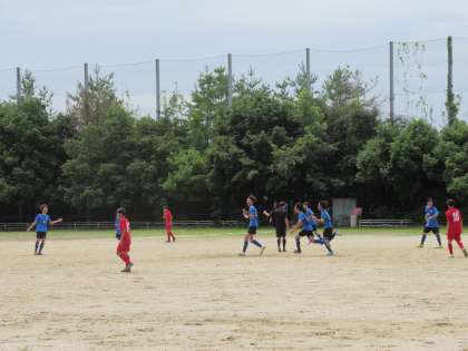 前半8分、右サイドからキャプテンTさんが持ち込んでセンタリング、これを受けたUさんが今度は落ち着いてインサイドキックで蹴りこみゴール! 見事、先制点を決めてくれました。やったー!