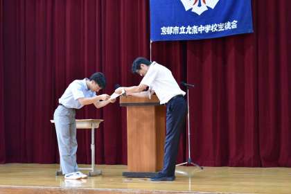 最初に校歌を全校で歌い、続いて表彰式へ移っていきました。今回も、本当にたくさんの頑張りが表彰という形で伝えられました。アリーナの皆さんからの拍手も温かい! 素晴らしい仲間です。
